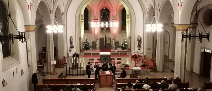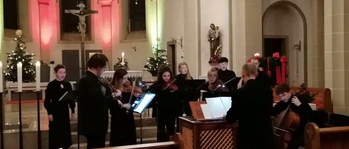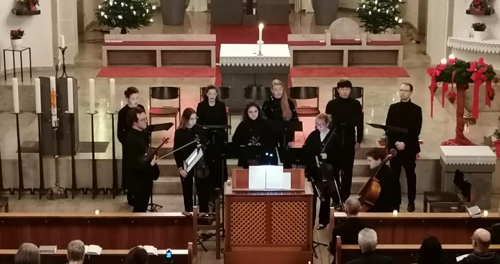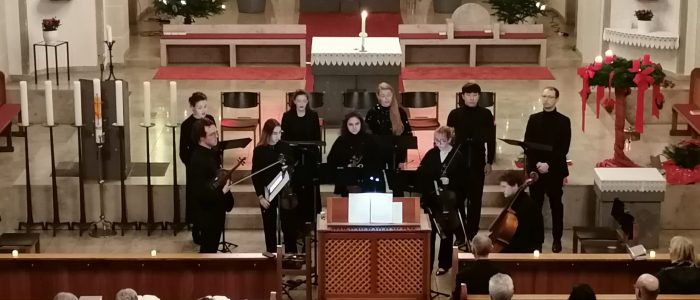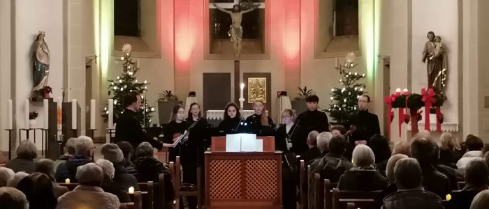 Die Aktion Kultur Heusweiler hatte zur Gestaltung ihres diesjährigen Adventskonzerts zwei Ensembles mit Studierenden der Hochschule für Musik Saar für den 11. Dezember in die kath. Kirche St. Josef in Holz eingeladen. Das Barockensemble unter der Leitung von Mechthild Blaumer sowie das Vokalensemble unter der Leitung von Lutz Gillmann, der zugleich die Gesamtleitung des Konzerts innehatte, präsentierten ein großartiges adventliches Programm mit Werken des französischen und deutschen Barock. An der Aufführung waren insgesamt elf Musikerinnen und Musiker beteiligt, darunter fünf Streicher sowie fünf Sängerinnen und Sänger.